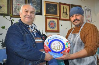 Kaligrafi yazılı tabak siparişi veren lokanta müşterisi Cem Yiğit, "Bu iş yerinin yan komşusu olarak buraya geldiğimde sanat eserlerini seyrederken daha çok iştahım açılıyor. Sanat çalışmaları ile ilgili bir siparişim var, tamamlanınca alıp evime asacağım" dedi.